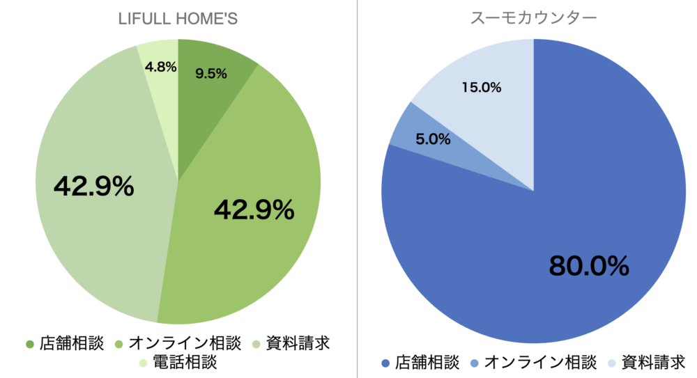 アンケートでも、オンライン相談の利用割合がスーモより圧倒的に高いという結果になっています。